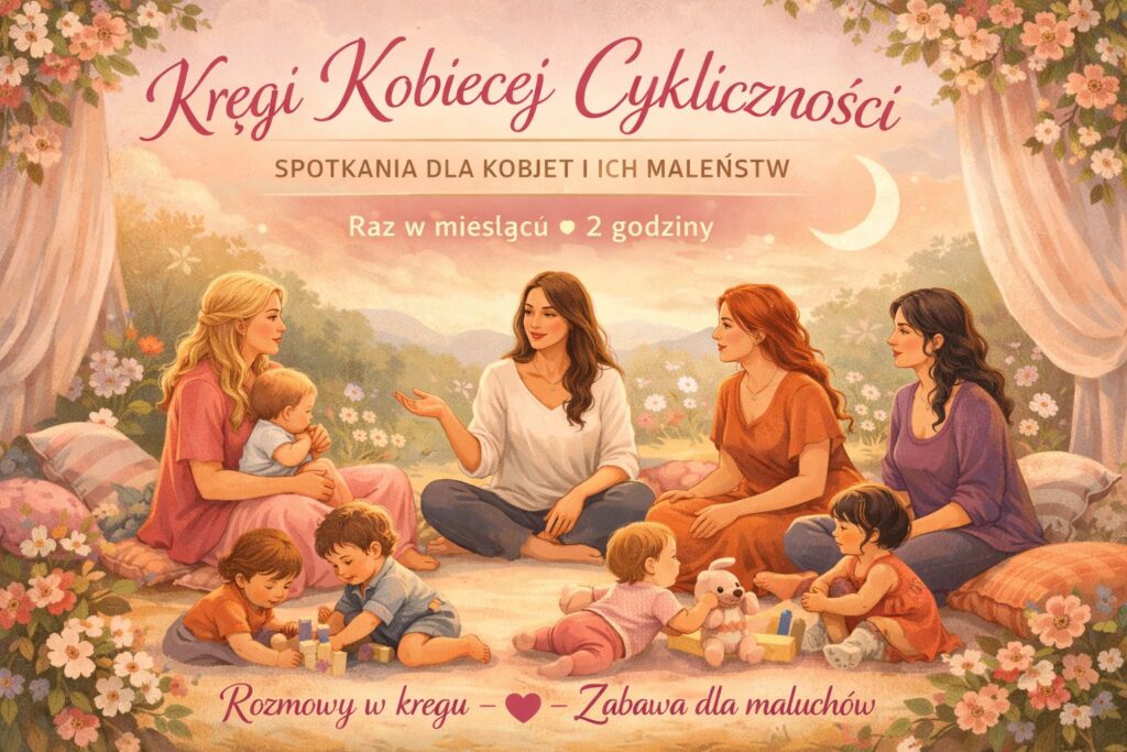 Kręgi Kobiecej Cykliczności – Spotkania dla kobiet i ich maleństw Zapraszam Cię do bezpiecznej, pełnej czułości przestrzeni dla kobiet, które chcą żyć